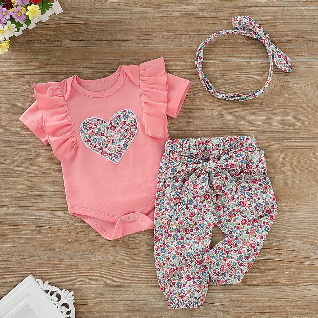 Newborn Baby Girl Clothes Sets Cute Ruffled Floral Top Bow
