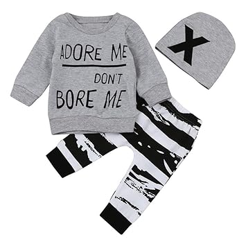 2019 Newborn Baby Boys Striped Gray Top Pants Hat Set Outfits Long Sleeve Brief Styles Baby Boy Clothes Clothing Clearance Low Price From Yuze2018