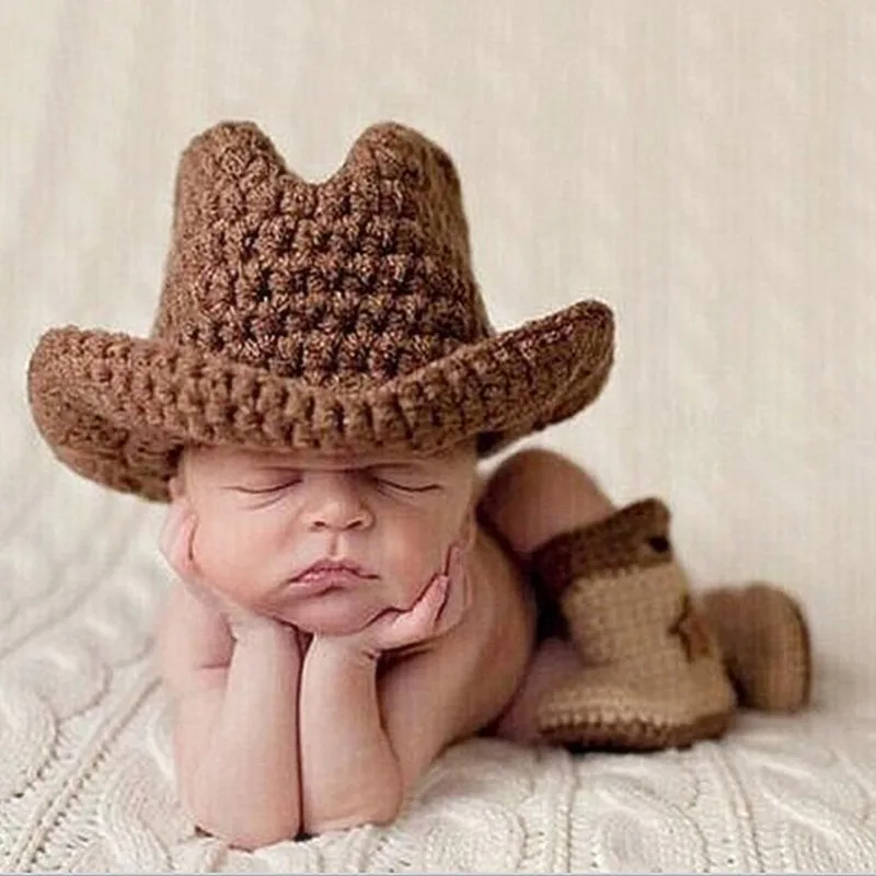 Details About Newborn West Cowboy Boys Baby Photo Clothes Hand Knit Clothes Photo Prop Hat