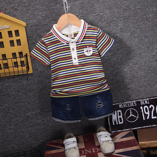 2019 Baby Boy Clothes Summer Korean New Fashion Stripe Lapel T Shirt Top Cowboy Shorts Bebes Jogging Suit Newborn Clothes From Baby Sports Suit
