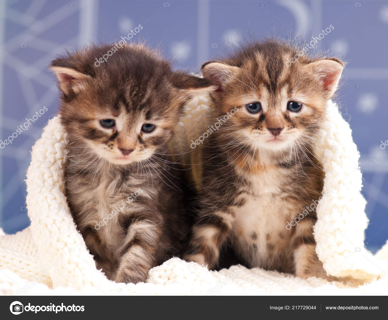 Cute Newborn Kittens Warm Knitted Sweater Close Stock