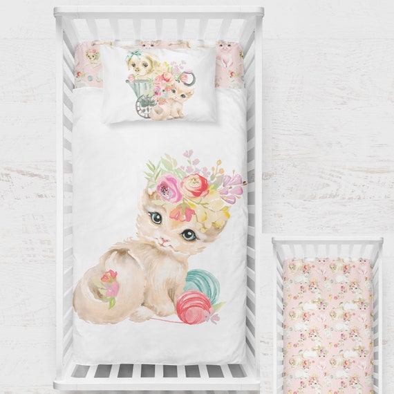 Newborn Baby Bedding Set Cute Little Kitten Bedding Set Bed Linen Gift Complete Crib Bedding Sets Pink Animals Sheet Pillowcase Cat