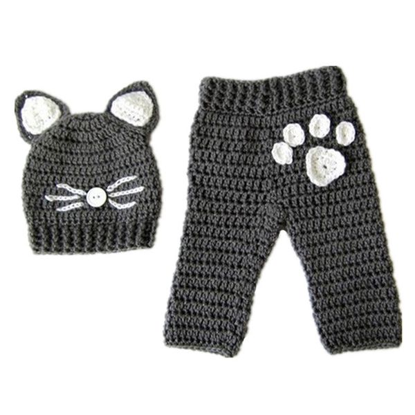 2019 Newborn Kitty Cat Outfit Handmade Crochet Baby Boy Girl Cat Hat Pant Set Infant Animal Halloween Costume Toddler Photo Prop Baby Shower Gift From