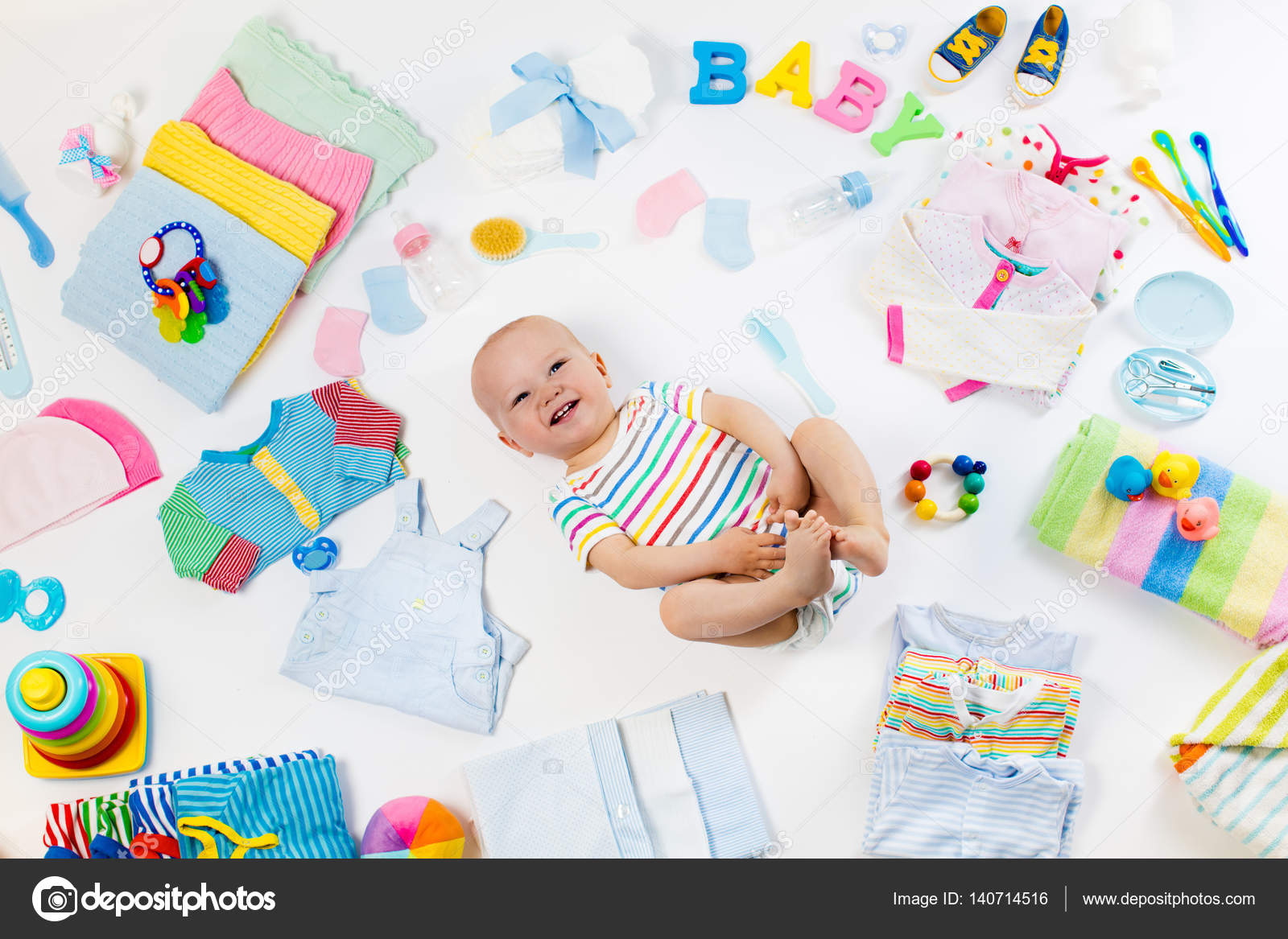 Baby With Clothing And Infant Care Items Stock Photo Image