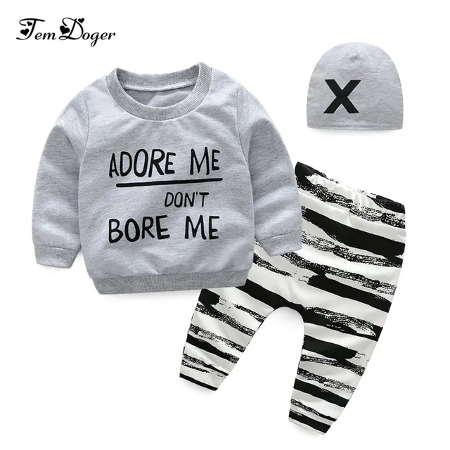 Tem Doger Baby Boys Clothing Sets Winter Infant Boys Clothes Suit Long Sleeve Sweatshirt Long Pants Hat 3pcs Newborn Outfits Set In Clothing Sets From