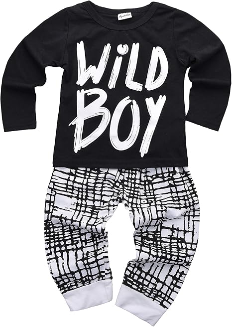 Newborn Baby Boys Clothes Wild Boy Letter Print T Shirt Tops And Pants Outfits Set Autumn Winter