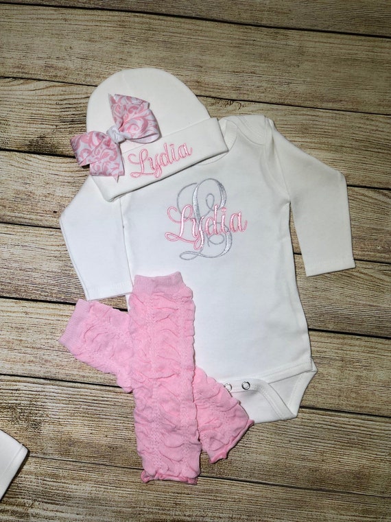 Newborn Hospital Outfit Personalized Baby Girl Clothes Newborn Girl Take Home Outfit Monogram Baby Girl Outfit Personalized Baby Pink