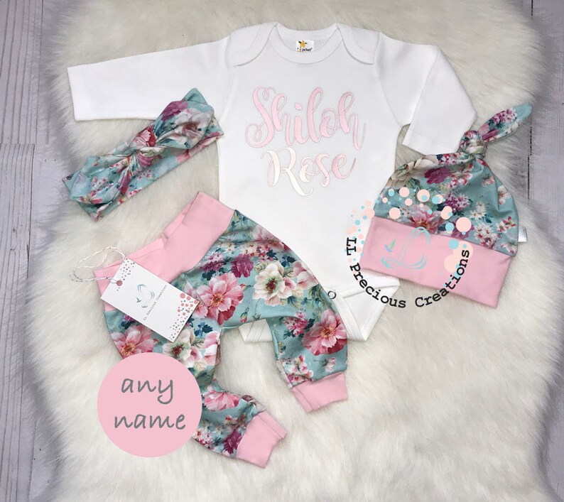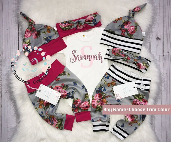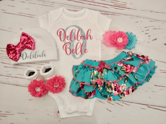 Baby Girl Newborn Coming Home Outfit Baby Girl Clothes Personalized Outfit Floral Outfit Baby Shower Gift