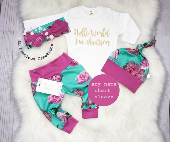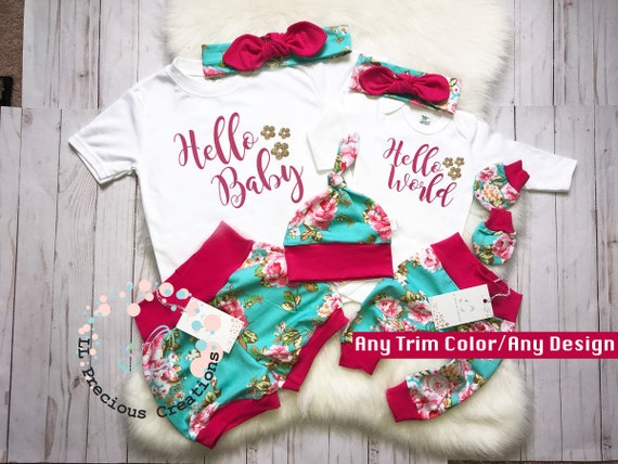 For cute two piece outfits find sets with a shirt and skirt or tunic and leggings. Baby girl coming home outfit baby girl clothes personalized baby girl gift personalized baby girl outfit newborn girl clothes newborn hat juniegrace. No matter what youre looking for or where you are in the world our global marketplace of sellers can help you find unique and affordable options.