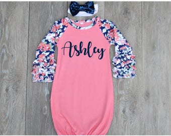 Newborn Girl Take Home Outfit Personalized Baby Girl Clothes Baby Girl Outfits Baby Clothes Infant Gown Baby Outfit Twin Girls Outfit