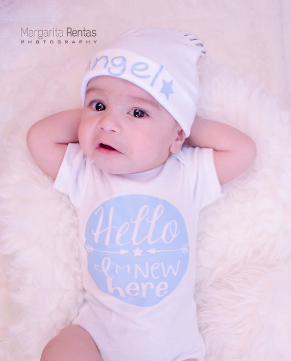 Newborn Baby Boy Hello I M New Here In Blue Baby Shower Gift Take Home Outfit Hospital Outfit Add A Matching Hat To Make A Set