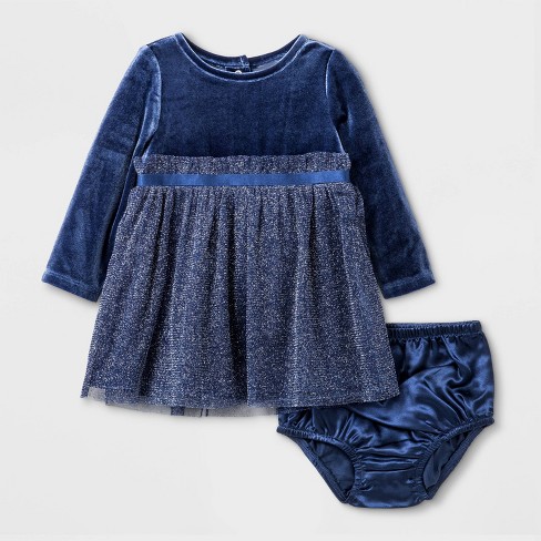 Baby Girls Velvet Dress Cat Jack Navy Newborn
