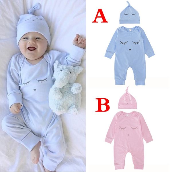2019 Ins Pink Blue Baby Eyes Onesies With Hats Infant Newborn Jumpsuit Autumn Cotton Rompers For Babies Girl Dress Children Clothes Kids Clothing From