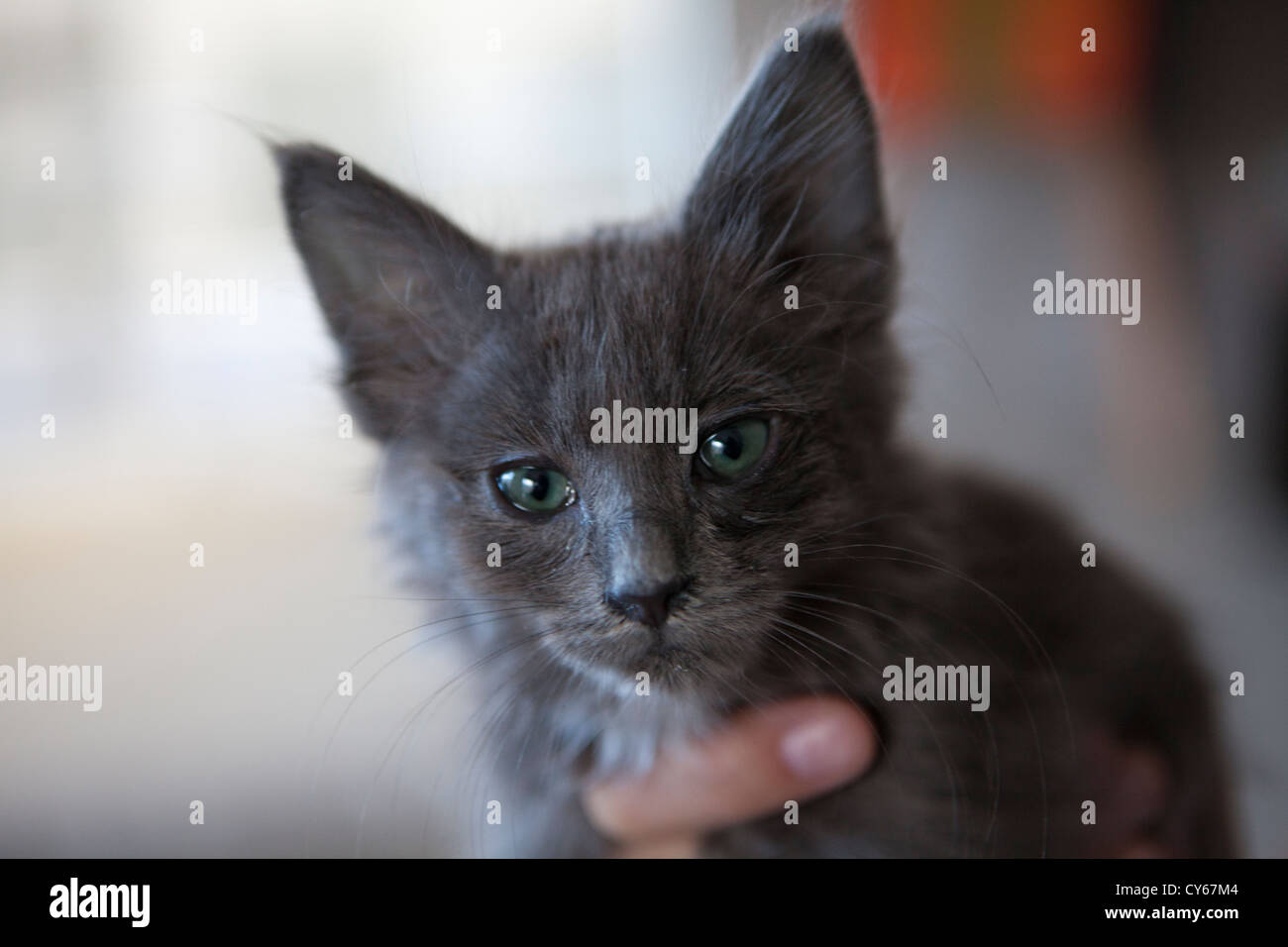 Gray One Month Old Blue Eyed Fluffy Kitten Russian Blue