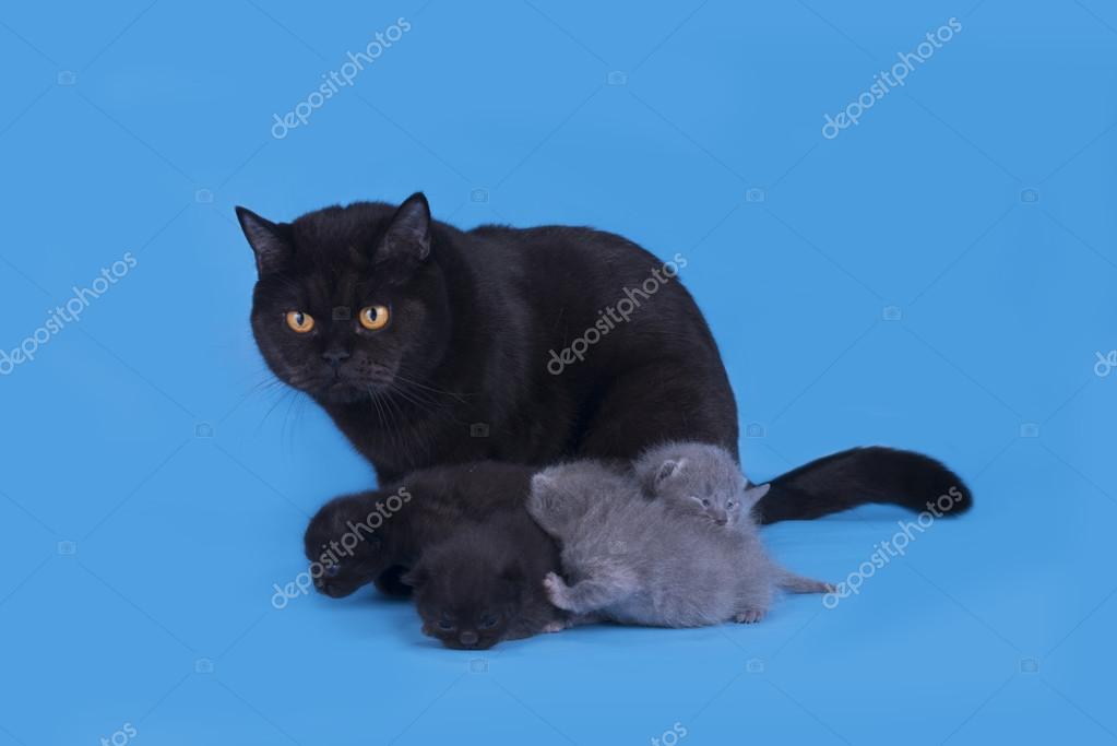 Grey Cat Nursing Her Newborn Kittens Buy This Stock Photo