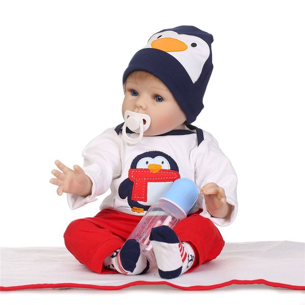 Cute 22 Silicone Vinyl Reborn Dolls With Cloth Body Lifelike Newborn Boy Babies Doll 55 Cm Reborn Toys Kids Birthday Gifts Cabbage Patch Doll Cloth