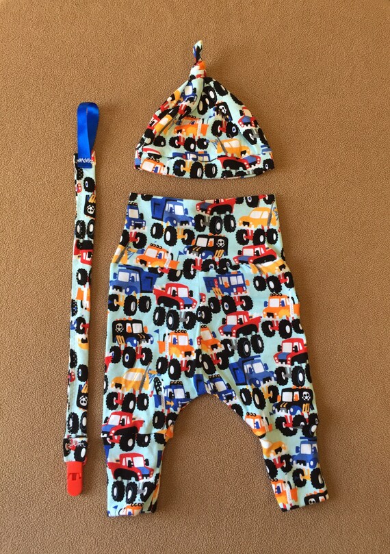 0 6 Months Set Of 3 Monster Truck Baby Boy Newborn Clothes Newborn Photoshoot Baby Accessories Binkie Clip Baby Pants Baby Shower