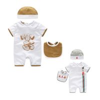 Hot Sale Baby Clothes Summer Short Sleeve Soft Cotton Kids Baby Romper Bib Hat 3pcs Baby Clothing