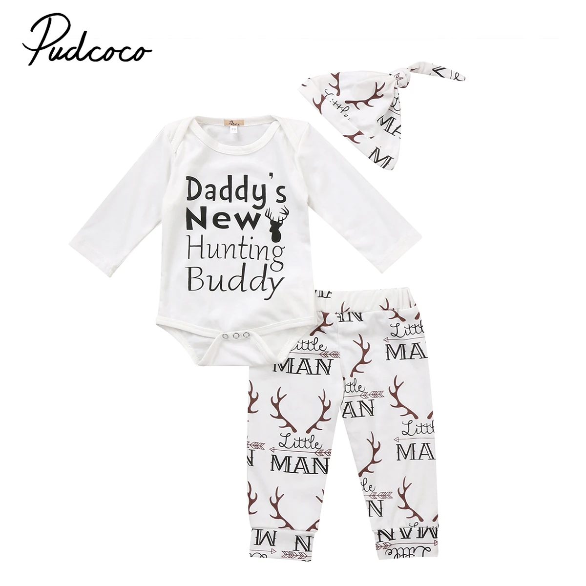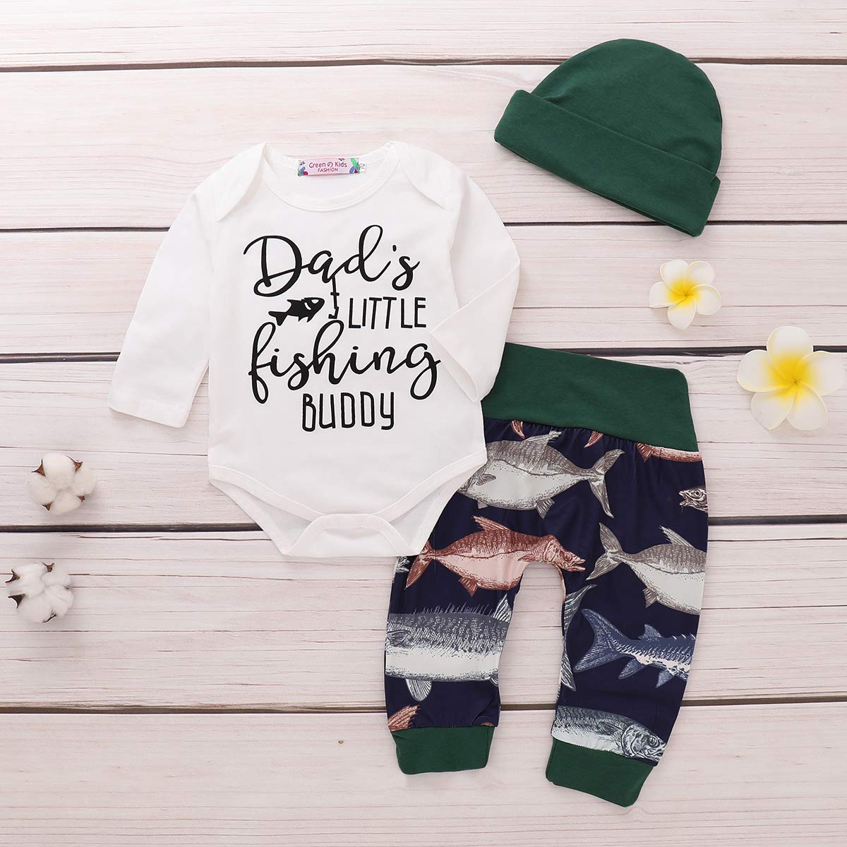 Candyeemma Dady S Fishing Buddy Baby Boy Clothes Newborn Romper Tops High Waist Long Pants Hat 3pcs Outfit Sets