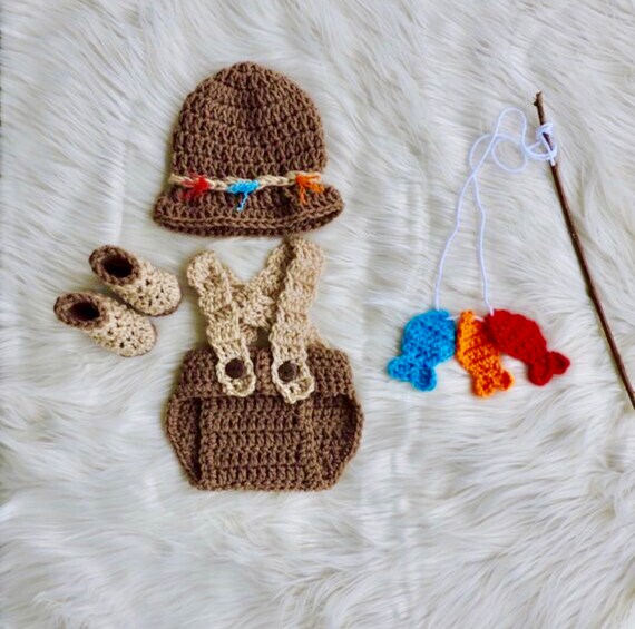 Crochet Baby Fishing Outfit Newborn Boy Photo Outfit Baby Fishing Costume Photography Prop Crochet Baby Clothes Baby Shower Gift Baby Boy