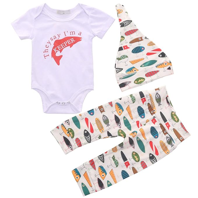 Details About Usa Newborn Baby Boy Girl Fish Print Tops Romper Pants Hat 3pcs Clothes Outfits