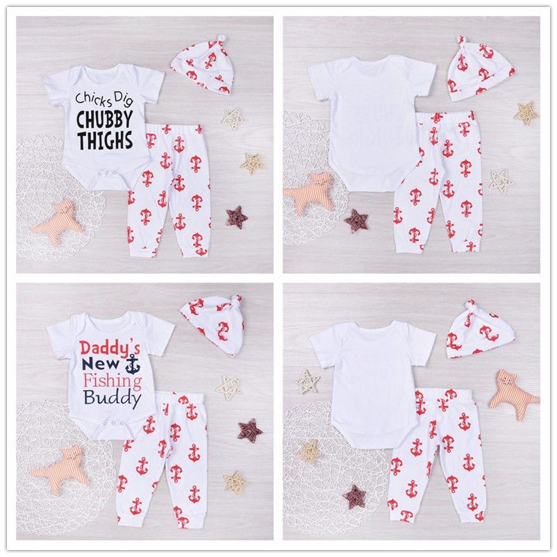 2019 Mikrdoo 2017 Hot Newborn Baby Clothes Suit Cotton Kids Boy Girls Fishing Buddy Rompers Pants Hat Clothing Sets Anchor Romper Outfits From