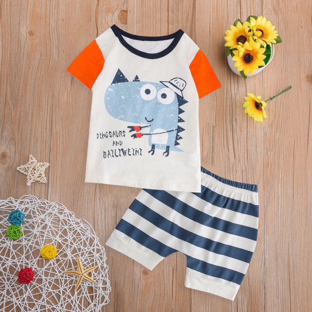 Muqgew Newborn Children Clothing Set Infant Baby Boys Girls Clothes 2pcs Short Sleeve Cartoon Tops Shirt Pants Outfits Set