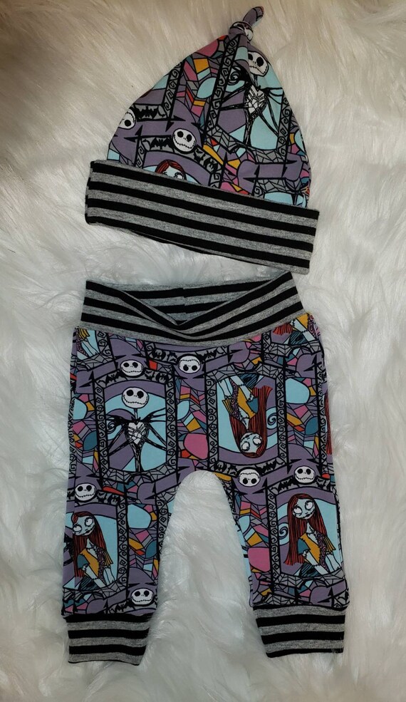 Nightmare Before Christmas Baby Pants Infant Knit Pants Jack Skellington Baby Hat Newborn Coming Home Outfit Baby Shower Gift