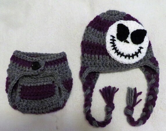Crochet Newborn Nightmare Before Christmas Jack Skellington Baby Inspired Hat And Diaper Cover Soaker Made To Order