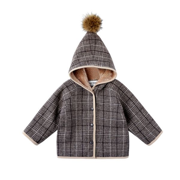 Newborn Baby Boys Winter Jackets Soft Velvet Boy Toddler Clothes Coat Plaid Balls Hooded Infant Hoodie Warm Baby Boy Outerwear Young Girls Coat Kids