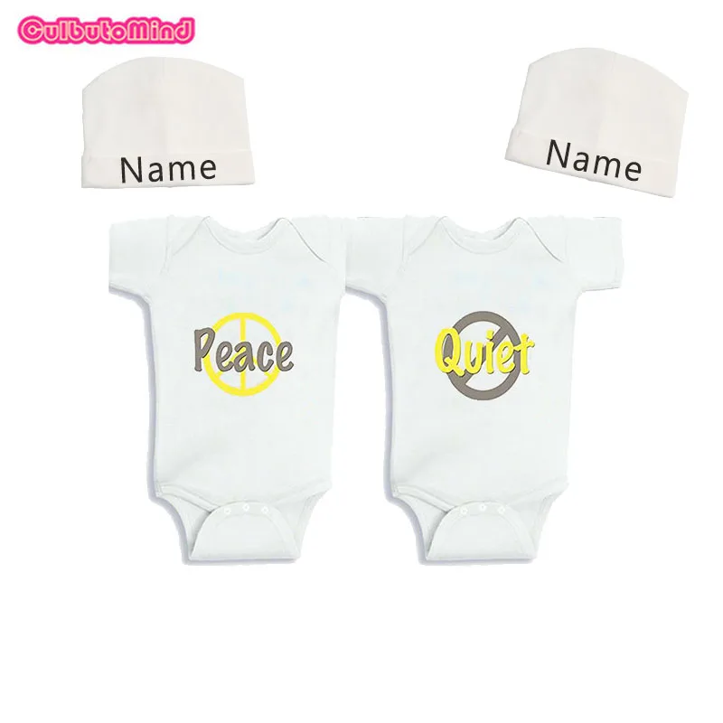 Us 13 77 47 Off Culbutomind Twins Baby Body Suits Forboys Girls Gift Novelty Summer Newborn Baby Clothes Set With Personalize Beanie Twinsoutfit In