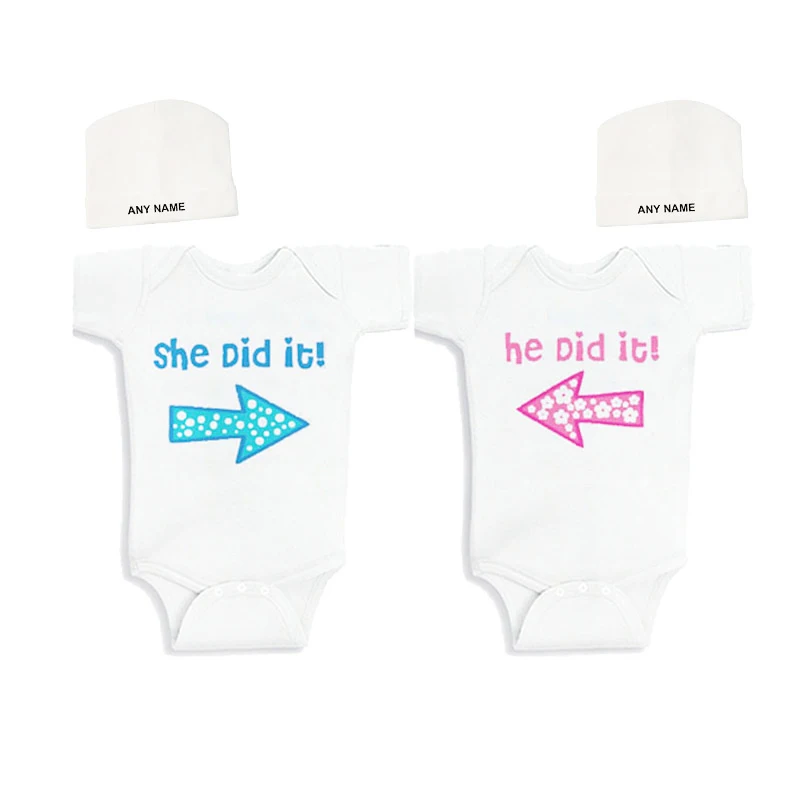 Us 11 0 45 Off Culbutomind Twins Baby Body Suits For Boys Girls Gift Novelty Summer Newborn Baby Clothes Set With Custom Cap In Bodysuits From
