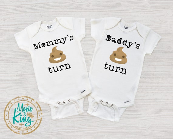 Twin Bodysuit Funny Baby Shower Gift Newborn Baby Clothes Twin Mommy Or Daddy S Turn Novelty Baby Bodysuit Unisex Bodysuit Baby Clothes Poop