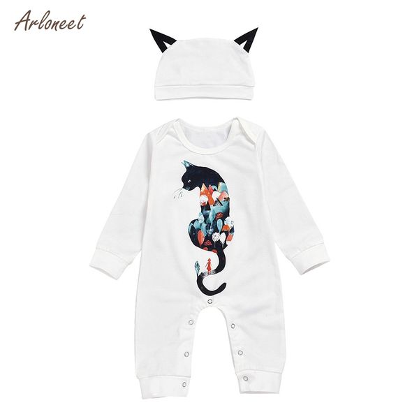 2019 Arloneet White Newborn Infant Baby Girls Cartoon Cat Jumpsuit Fashion Novelty Romper Outfits Girls Clothes Winter 2019 From Breenca 37 76