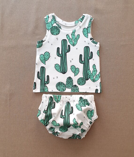 Cactus Organic Cotton Clothing Set Of 2 Tank Top And Diaper Cover Organic Baby Clothes Size 0 3 Months Newborn Clothes Set Baby Shower