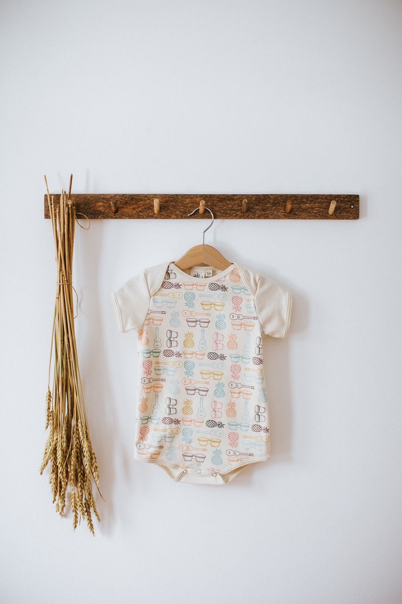 Organic Cotton Onesie Organic Baby Clothes Bodysuit Newborn Clothes Tropical Pineapple Vacations Cream