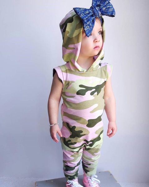 2018 Army Girls Pink Camo Sleeveless Newborn Baby Clothes Jumpsuit Romper Playsuit Outfits