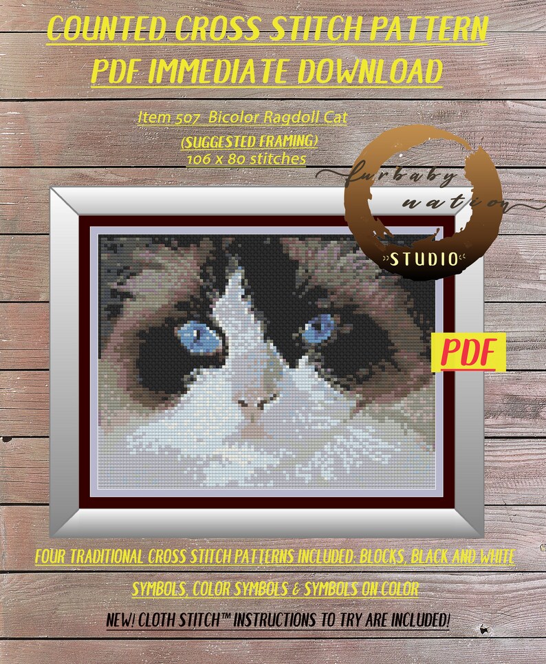 Bicolor Ragdoll Cat Cross Stitch Embroidery Pattern Xstitch Pdf Pattern Download How To Cross Stitch Instructions Included With Chart