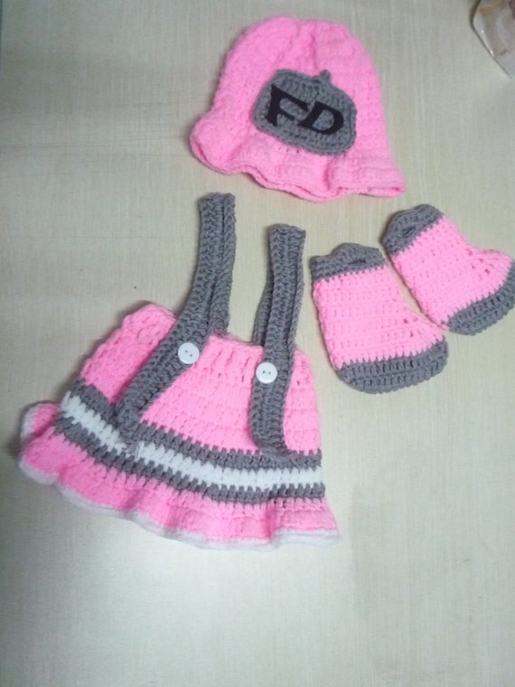 On Sale Newborn Baby Girls Hat And Skirt Shoes Clothes Outfit Knit Crochet Pink Baby Girl Fire Fighter Set Fireman Set Photo Props El292