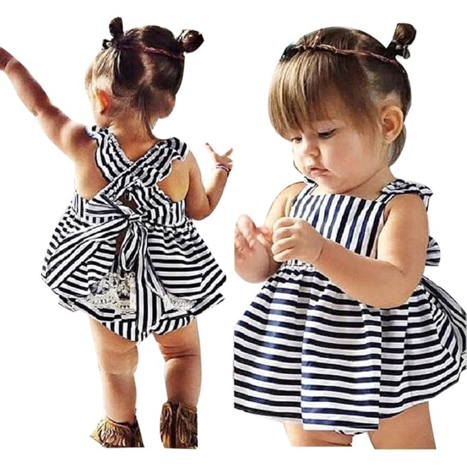 Goodlock Toddler Infant Fashion Clothes Set Baby Girls Clothes Summer Sunsuit Stripe Backless Dress Brief Outfit Set 3pcs