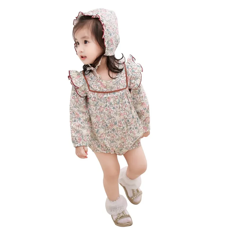Autumn Print Girl Bodysuits Hat Fashion Newborn Baby