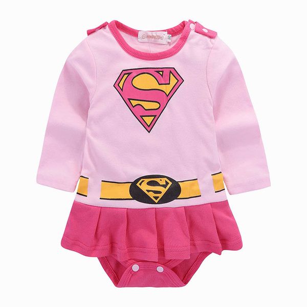 2019 Superman Baby Rompers Pink Long Sleeve Dresses Girls Romper Cotton Newborn Jumpsuit Infant One Piece Clothing Baby Girl Clothes A2850 From
