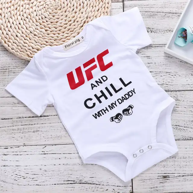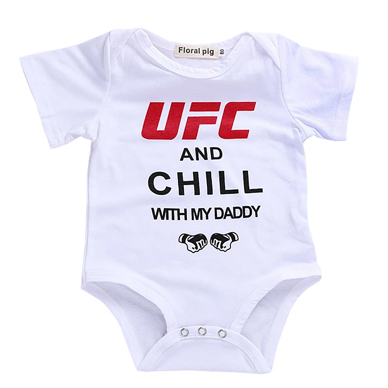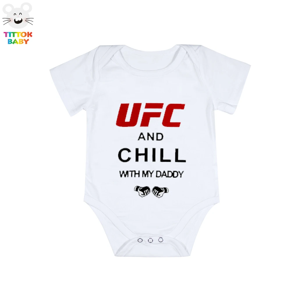 Us 3 2 11 Off Newborn Baby Boy Girl Clothes Baby Ufc Chill With Daddy Letter Print Bodysuits Infant White Cotton Short Sleeve Jumpsuit Outfits In