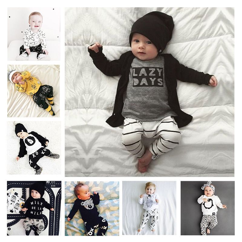 2019 Infant Pajamas Baby Clothing Sets Boy Long Sleeve Spring Autumn Winter Outfits Set Toddler Letter Suits Baby Girls Newborn Clothes Set From