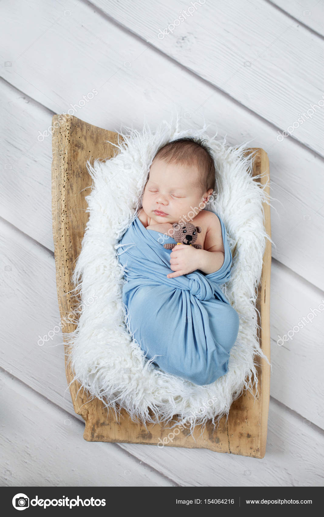 Newborn Baby Boy Sleep Over Blue Sleeping New Born Child