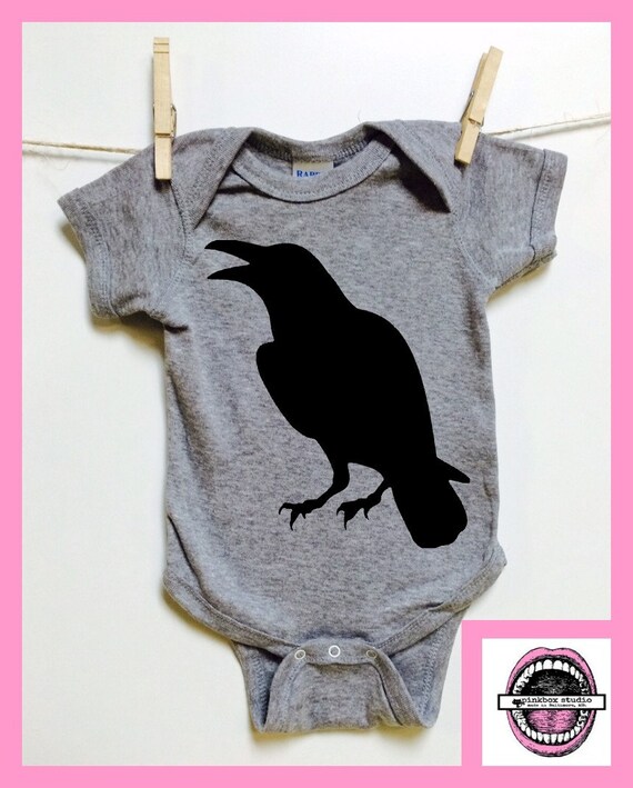 Raven Black Bird Edgar Allen Poe Quoth The Raven Nevermore Hand Printed On A Heather Gray Baby Bodysuit