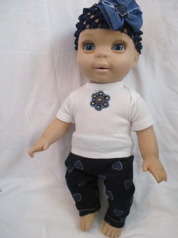 Newborn Luvabella Doll 3 Pc Outfit Blue Hearts Glitter Pants Tee Headband Set