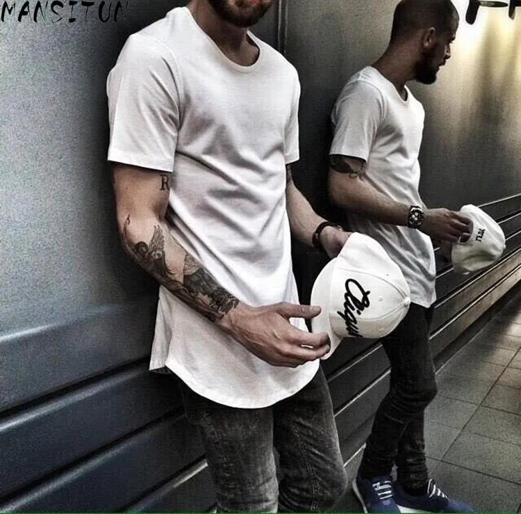 Us 10 78 35 Off Hipfandi 2017 Men Big And Tall Clothing Designer Citi Trends Clothes T Shirt Homme Curved Hem Tee Plain White Extended T Shirt In