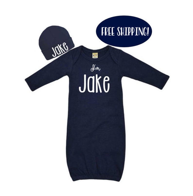 Newborn Boy Coming Home Outfit Personalized Baby Boy Outfit Baby Shower Gift Cute Baby Boy Outfits Navy Blue Baby Boy Clothes Baby Hat