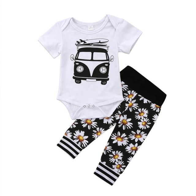 Newborn Baby Boy Girl Flower Romper Outfits Top Pants 2 Piece Set Boys Girls Toddler Clothes Kid Clothing Boutique Wholesale Products